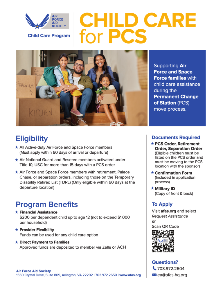 Supporting Air and Space Force families through financial assistance programs designed to reduce stress and enhance family readiness.